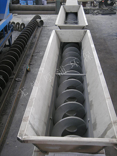 1、螺旋輸送機的結構形式為精密鑄造無軸螺旋,能保證物料輸送流暢,無堵塞。